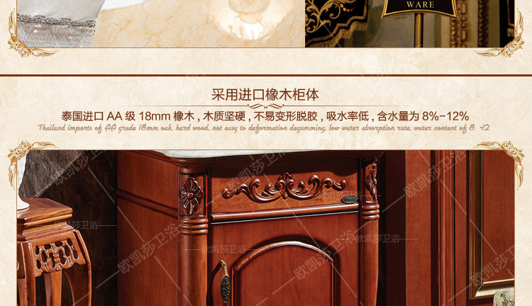我司實木浴室柜采用進口的泰國橡膠木(行業(yè)統(tǒng)稱為泰國橡木)和美國紅橡,請親知悉!